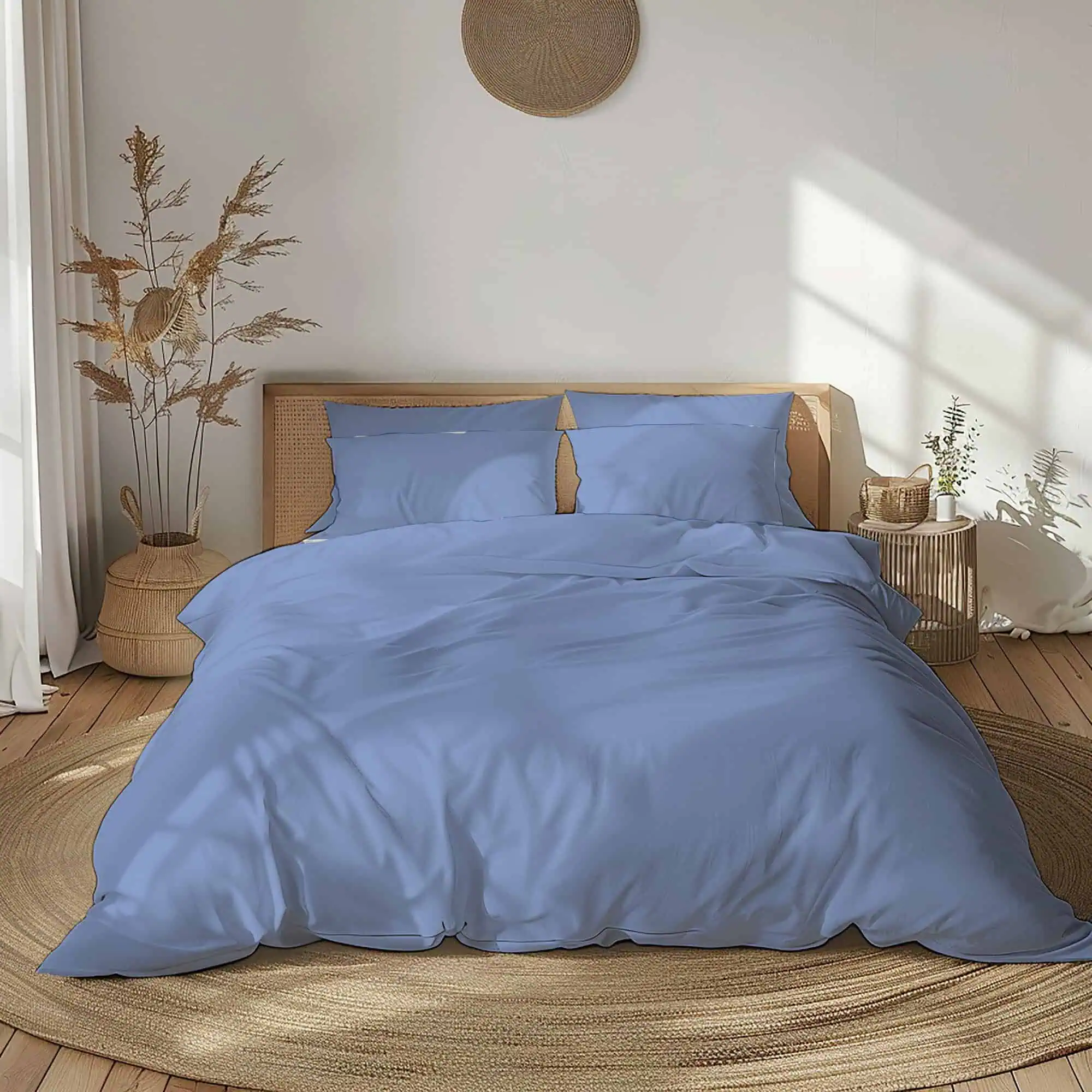 De ce să alegi setul nostru de lenjerie de pat uni albastru deschis din bumbac ranforce?