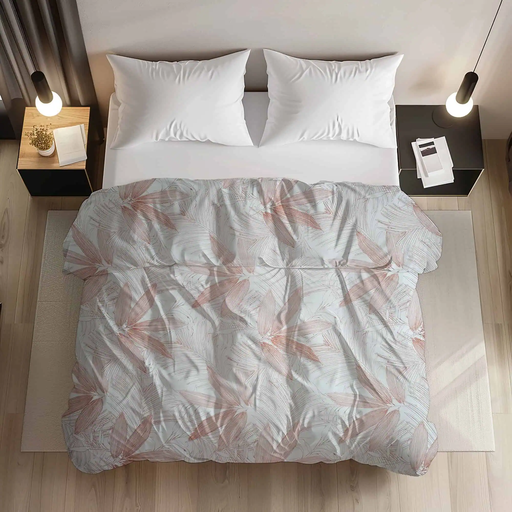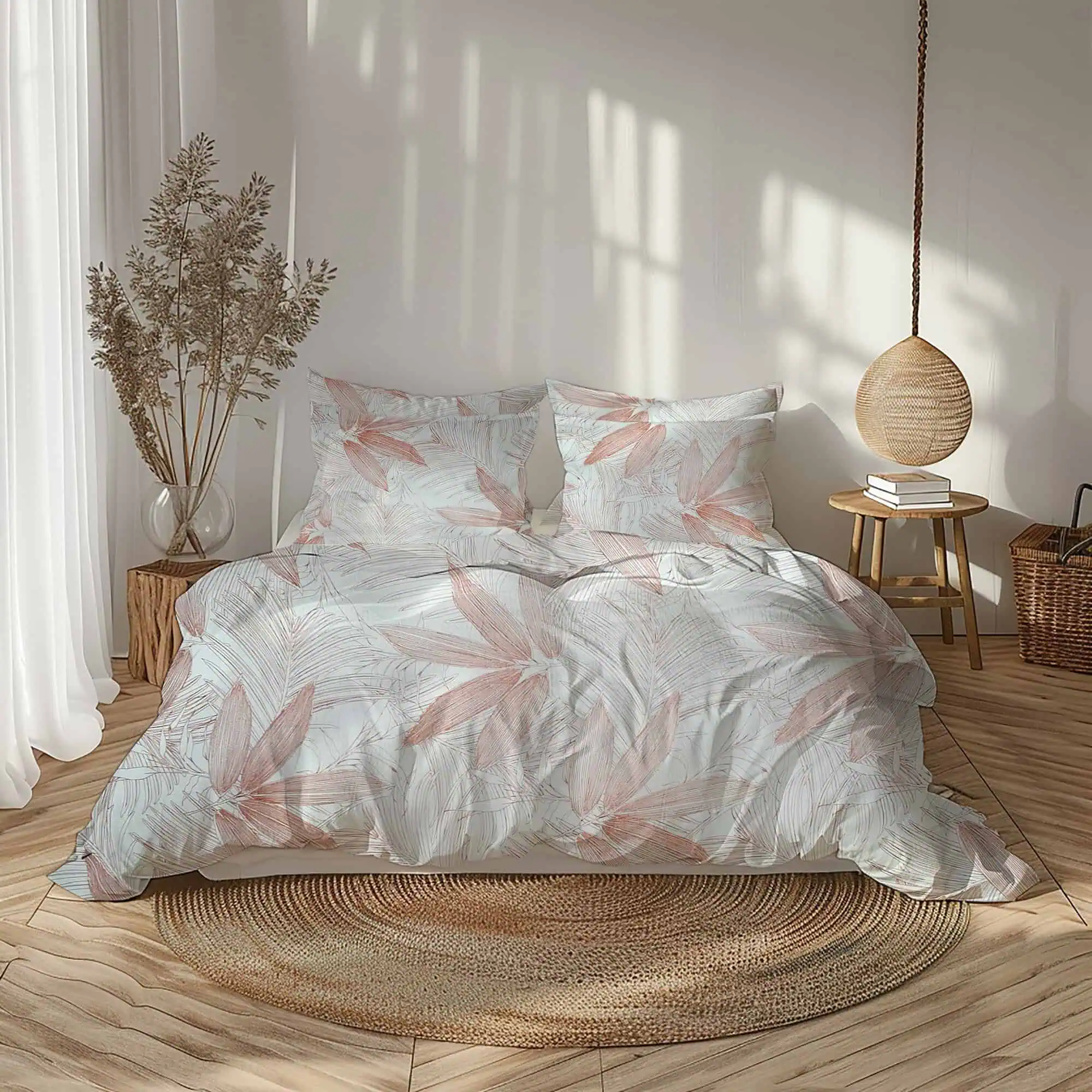 De ce să alegi setul nostru de lenjerie de pat cu imprimeu de frunze pastel din bumbac 100% standard?