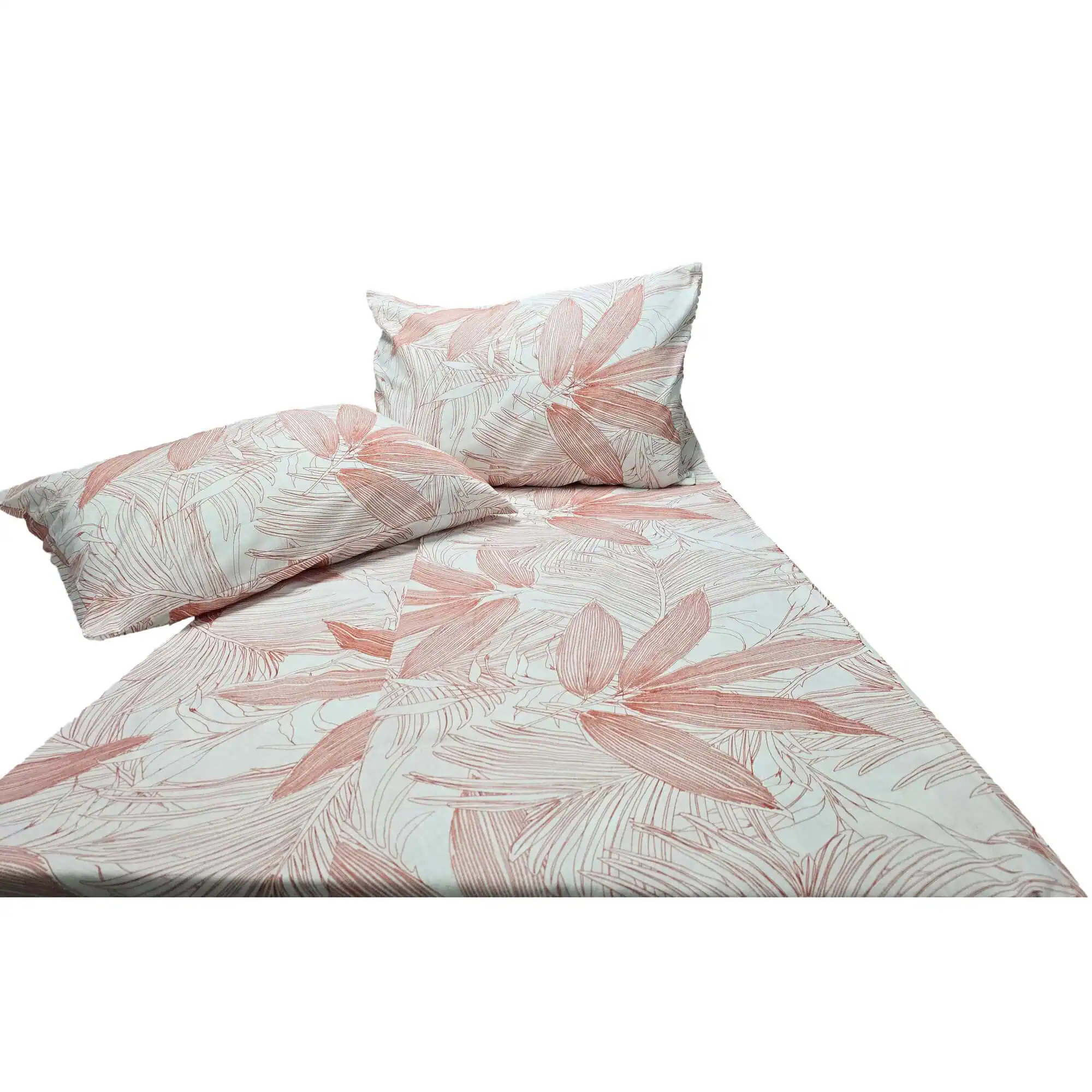 Îmbracă-ți dormitorul într-o notă de rafinament subtil și modern cu acest set de lenjerie de pat elegant. Confecționat din bumbac 100% standard de calitate, acest set oferă o senzație moale și plăcută la atingere, transformând somnul într-o experiență relaxantă. Designul său abstract prezintă un imprimeu delicat de frunze stilizate în nuanțe pastelate de roz și alb, adăugând o notă de prospețime și liniște dormitorului tău.